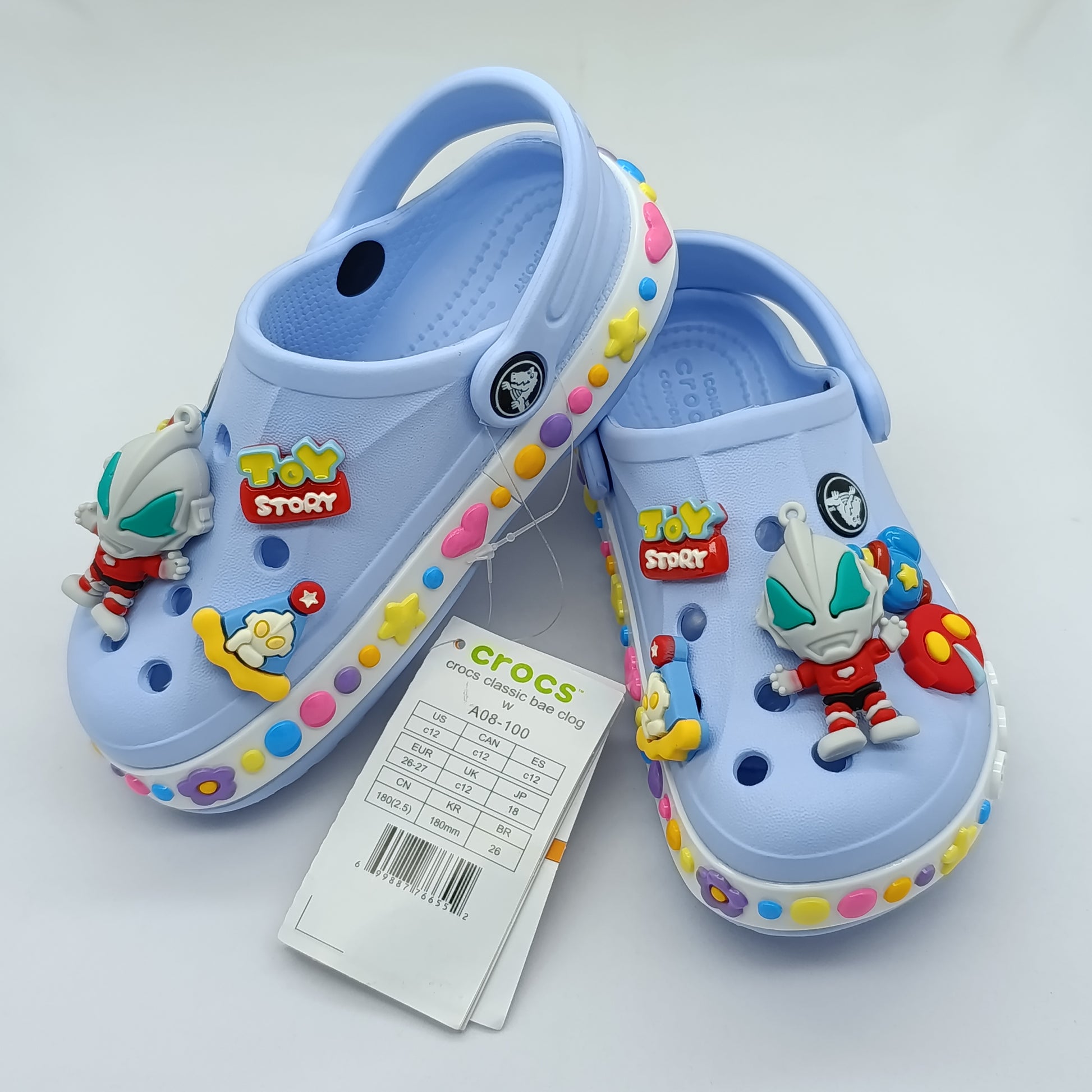 "Experience EVA Comfort! Our Crocs are made from soft, flexible EVA material, providing a cushioned feel with every step. They're perfect for playdates and puddles because they're completely water-resistant and easy to clean."